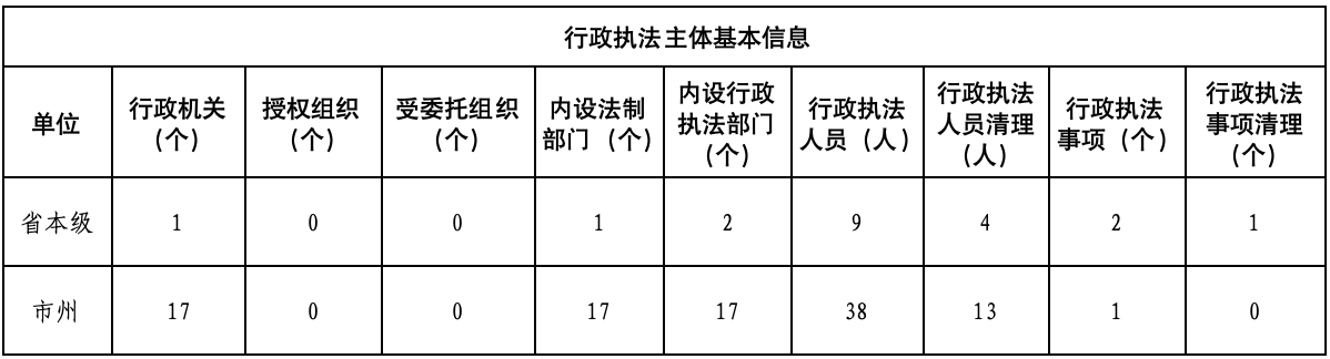一、行政执法主体概况